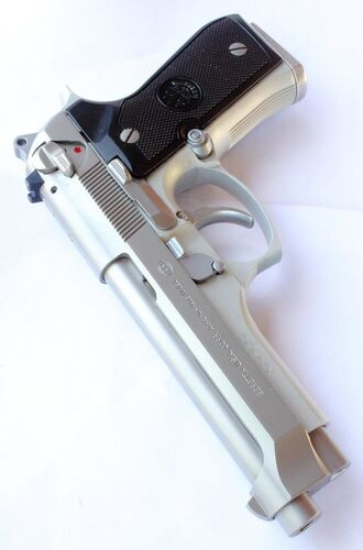 M92FS INOXです。(2014 ワールドガンにて) メジャー過ぎる銃ですが、やはり撃っておかないと。棚をよく見ずにM92FSと書いたので、射撃場でINOXが出てきた時は少し驚きました…でも、叛逆でほむほむが使ってたのでオッケーです。 マガジンにカートを詰めてい…