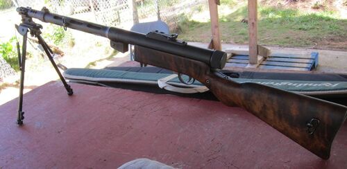 スオミKp/-31です。(2014 ワールドガンにて) 今回撃ったのは、パーツキットを再生してセミオート・クローズドボルトにしたモデルです。アメリカの法律ではバレル長がちょっと足りないので、バレルが延長されていました。 50連発の複々列マガジン。 この形…